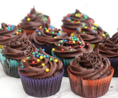 For longer storage, cupcakes freeze very well before frosting. Wrap each one individually in cling film and place in a freezer-safe container. They will keep for up to three months. Thaw at room temperature for 1 to 2 hours, then freeze as usual once fully defrosted.